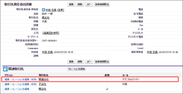 さて、いよいよ、取引先責任者を他の取引先と紐づけてみましょう。